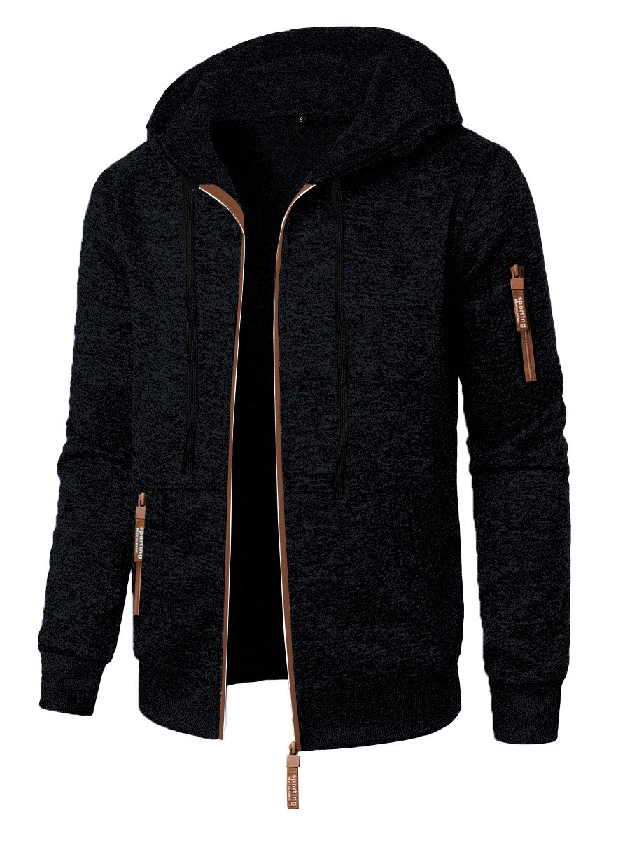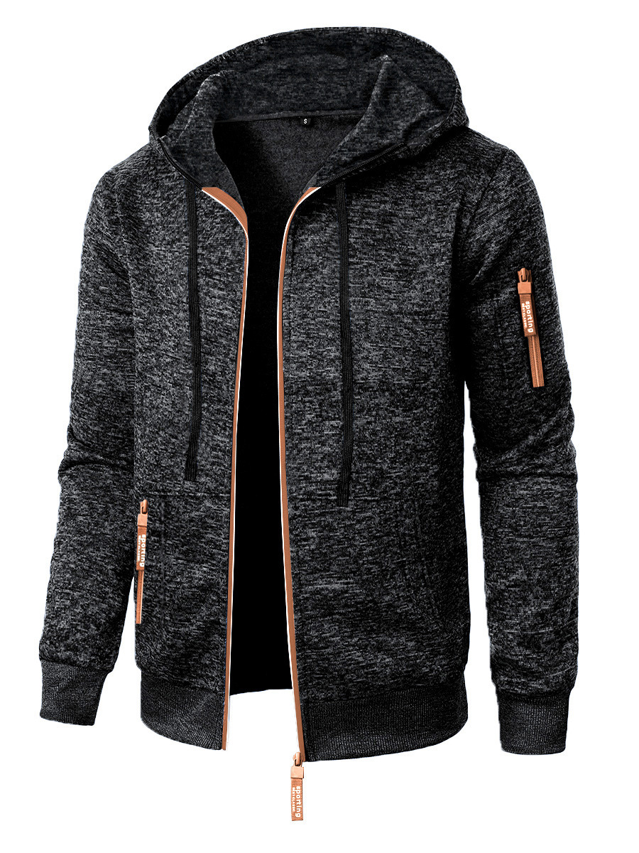 Men’s Sports Fitness Casual Jacquard Sweater Hooded Coat