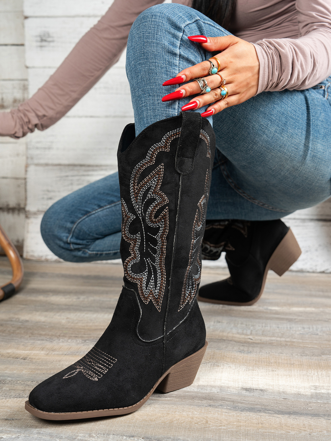 Be the first to review “Pointed Toe Western Cowboy Boot Women’s Large Size Embroidered Thick Boots”
