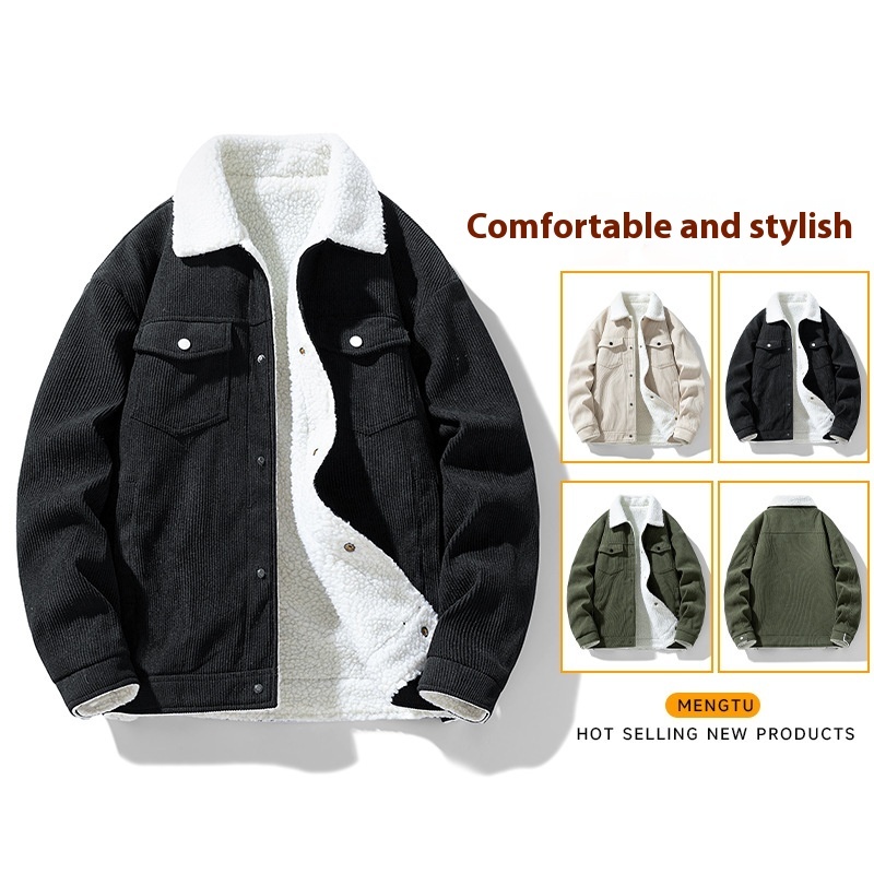 Retro Fashion Brand Fleece-lined Warm Lapel Cotton-padded Coat